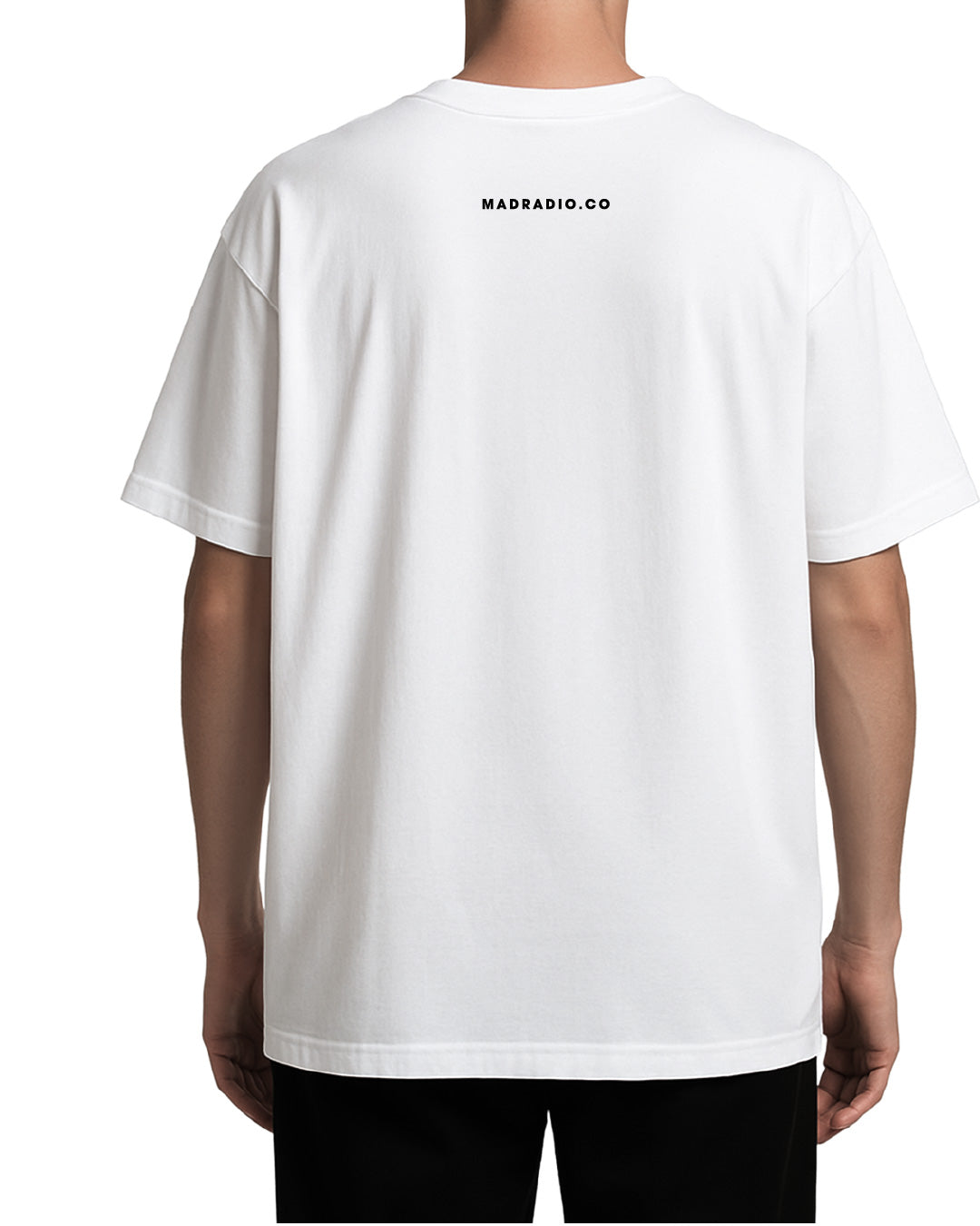 Camiseta oversize con el lema que define la esencia de Mad Radio. Un recordatorio de que la calidad también suena.